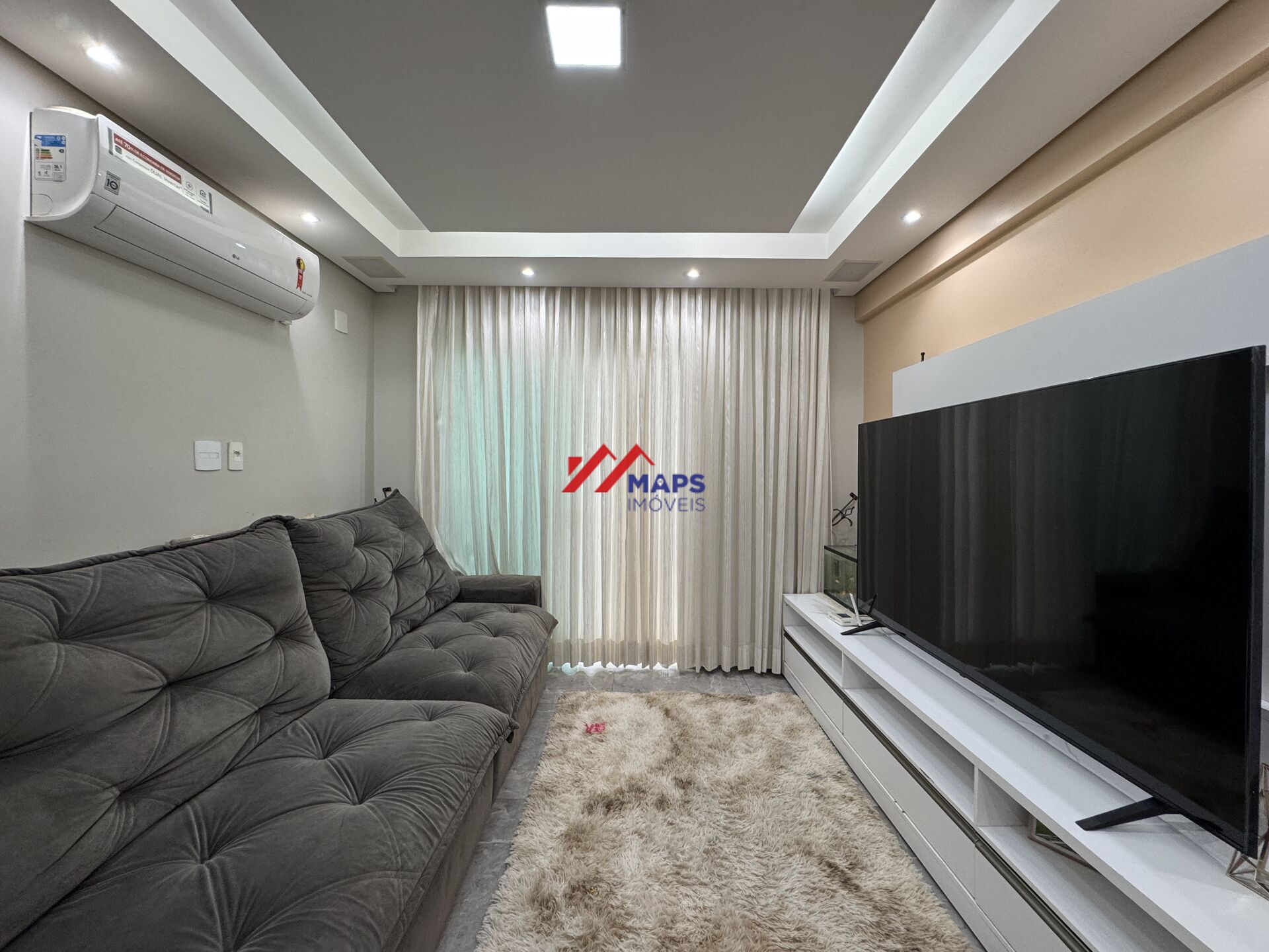 APARTAMENTO/CARACTERÍSTICAS: Piso em cerâmica e porcelanato. Revestimento em pintura, cerâmica, textura e porcelanato. Bancada em granito. Portas em madeira e em vidro temperado. Janela em esquadria de alumínio e janela em alumínio com veneziana. Banheiro com box. Rebaixamento de teto com iluminação embutida. Tubulação para ar-condicionado. Armários na cozinha, em dois quartos, nos dois banheiros e na área de serviço.